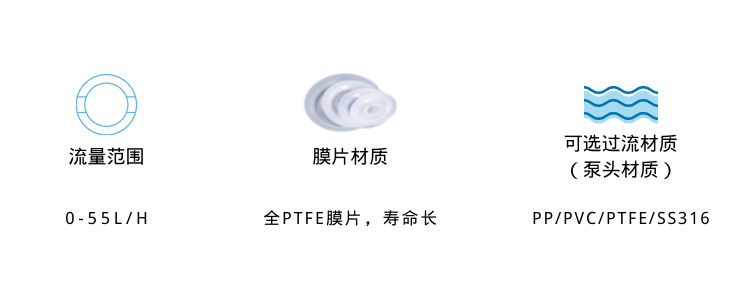 耐腐蚀的泵头:PP,PVC,PTFE,SS316(定制);